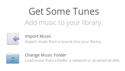The first set explains the situation and what the Welcome Screen will help you accomplish. As an example, Music's Welcome Screen explains that your music library is empty and that in order for the library view to become useful, we must import songs into our library.